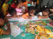 Dear Friends, Aunty Nila Tanzil, founder of this wonderful organization called Taman Bacaan Pelangi, shared her stories and pictures again when she opened another village library in Tomara Village, Bacan Island, South Halmahera. Thanks to Mr. Keith Phillips who sponsored this library, Aunty Nila and her other collaborator, Rumah Belajar Bibinoi now can provide children in that village a collection of good books and weekly programs! My story and coloring books, "Mencintai Laut Indonesia" or "Loving Indonesian Oceans" are also part of the collection. I just love to see how the children their enjoy coloring the books, using the pencil color sets provided by our sponsor, Cerebrofort. Coloring is still a FUN activity for many children, and using my books, they can both learn and have entertainment at the same time. I hope that they can see how rich and beautiful Indonesian oceans and all the living creatures inside them so that they will take good care of their oceans out of love. Thank you so much, Aunty Nila, for bridging all of us and create a world full of rainbows where children are happier because they can read books and learn from them. You also can see more pictures by visiting my "Didgit Cobbleheart" Facebook or follow my Twitter/ Twitpic page @cobbleheart. Yours truly, Didgit |