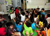 Dear Friends, I finally had a chance to deliver books to one of our partners from last year Color Your Life program. Its called Warabal and it stands for Warung Baca Lebakwangi or the Lebakwangi Reading Stall. This institution is located in Pamegarsari village, Parung, Bogor, Indonesia. The founder, Mrs. Kiswanti, was only an elementary school graduate who loves books and reading with a childhood dream of building a library of her own. What interesting about Warabal is that this small library is free for everyone to use. Starting from the putting together books and magazine in her house terrace, she invited children from the surrounding areas to read. She even rode bicycle, selling jamu (Indonesian herbal medicine), in and out of several villages there, while bringing books so that villagers can borrow those reading materials. While riding the bicycle she would shout, Jamu... jamuuu... buku... bukuu... Yang mau sehat minum jamu, yang mau pinter baca buku!” (“Jamu... jamu... Books... books... Drink jamu if you want to be healthy. Read books if you want to be smart). Warabal started with 180 books, and now it has a collection of approximately 8,000 books. The book collection is currently housed inside a two-storey house where it serves as a library as well as a community center. I went to Warabal bringing my story and coloring books Mencintai Laut Indonesia (Loving Indonesian Oceans) and Mencintai Flora dan Fauna Indonesia Barat (Loving Flora and Fauna of Western Indonesia) for my new friends there. They were so eager to get my books that several of them approached Aunty Helen several times to ask about when they could get the books. We had fun first before books and milk were distributed, and finally, we ended the event with picture taking. Yours truly, Didgit |