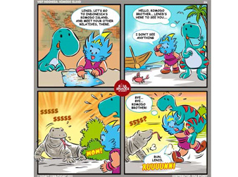 The 16th interactive comic strip for my Soul Snacks by Didgit have been uploaded to my Facebook and Twitter/Twitpics accounts on Wednesday, April 17, 2013. Didgit learns about Indonesia, is the storys theme for this week, and it was requested by Aunty Oda Sturey. Aunty Oda wants to excite her little son to learn more about Indonesia, her birth country. So, she asked me if I could help her do so. I quickly said YES! Indonesia is such a big archipelago. With more than 248.6 million people, Indonesia is the fourth most populous country in the world! Its the worlds largest Islamic nation, and the country has more than 17,000 islands as well as 700 languages and dialects! I dont think I can count that many islands and speak that many languages myself! How about you? I have more than enough materials to create FUN interactive comics about Indonesia. So, for this first Indonesian theme comic, I decided to make a Komodo dragons story because Indonesia is the only place in the world to see the Komodo dragon in the wild! If you like to tell your story and have your own Soul Snacks by Didgit comic strip like this one, just write to me on my Facebooks account (Go to my web: www.didgitcobbleheart.com and click the Facebooks icon on the lower right hand side) or my Twitter/ Twitpics account @cobbleheart. Soul Snacks by Didgit is a weekly interactive comic strip that will be available on my Facebook and Twitter/Twitpics accounts every Wednesday! Stay tune for the next edition, or better, send me your ideas so you can show your friends your own comic strip! Truly Yours, Didgit |
