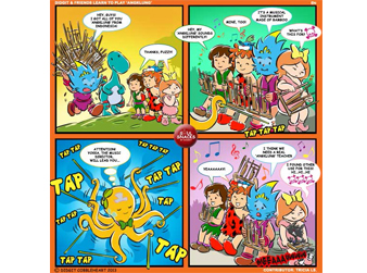 The 21st interactive comic strip for my Soul Snacks by Didgit have been uploaded to my Facebook and Twitter/ Twitpics accounts on Wednesday, May 22, 2013. The idea of the story came from Aunty Tricia Ls. She has been teaching Indonesian traditional musical instruments made of bamboo called angklung in the United States of America. From Aunty Tricias story, I knew that a lot of American students love the chance to try this unique musical instruments. Angklung is a social musical instrument since you will not be able to produce nice melody playing it alone. Each angklung produces a particular sound when you shake it, so in order to play many sounds of music, you need a lot of friends to play angklung together. Isnt that wonderful? This musical instrument teaches us to be a team player. Thats what my friends and I tried to learn when Fuzzy brought back angklung from his visit to Indonesia. Certainly, if you read this edition of comic strip, you know that we need a dedicated and talented teacher like Aunty Tricia in Cragtop Caves! Sharing this story with all of you also was a beautiful experience for me. In two days, this comic strip was seen by almost 700 people! Its a record high for me, especially when almost all when viral. I am so happy if you like to share my comic strips with your friends. Please do so as many times as you wish, and let me know what you think. And, if you like to tell your story and have your own Soul Snacks by Didgit comic strip like this one, just write to me on my Facebooks account (Go to my web: www.didgitcobbleheart.com and click the Facebooks icon on the lower right hand side) or my Twitter/ Twitpics account @cobbleheart. Soul Snacks by Didgit is a weekly interactive comic strip that will be available on my Facebook and Twitter/ Twitpics accounts every Wednesday! Stay tune for the next edition, or better, send me your ideas so you can show your friends your own comic strip! Truly Yours, Didgit |