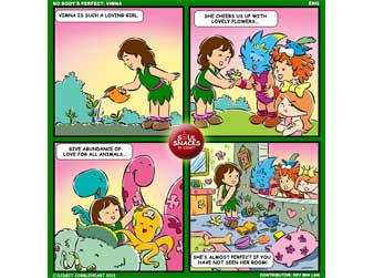 The 37th interactive comic strip for my Soul Snacks by Didgit have been uploaded to my Facebook and Twitter/ Twitpics accounts on Wednesday, September 11, 2013. The idea of this interactive comic strip again comes from Aunty Oey Min Lan. I like her No Kids Perfect idea that I made this idea a series. You had 3 stories before about me, Fuzzy and Jinga. So, this time, Vimna is the subject of this interactive comic. As far as Im concerned, Vimna probably is the most perfect kid in the world! Shes very caring and loving. But, again... apparently theres no perfect kid. We finally found out her imperfection! If you want to find out, please read the whole story on my Facebook page. And, if you want your own Soul Snacks by Didgit comic strip like this one; just write to me on my Facebooks account (Go to my web: www.didgitcobbleheart.com and click the Facebooks icon on the lower right hand side) or my Twitter/ Twitpics account @cobbleheart. Soul Snacks by Didgit is a weekly interactive comic strip that will be available on my Facebook and Twitter/ Twitpics accounts every Wednesday! Stay tune for the next edition, or better, send me your ideas so you can show your friends your own comic strip! Truly Yours, Didgit |