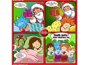 The 48th interactive comic strip for my Soul Snacks by Didgit have been uploaded to my Facebook and Twitter/ Twitpics accounts on Wednesday, December 4, 2013. Christmas is coming soon to town, and December 4 is the Santas List Day. So, whats Santa bringing to the children of Cragtop Caves? Check it out on my Didgit Cobbleheart Facebook page! If you want to have cool Didgits Soul Snack interactive comic like this one, share your thoughts with me by writing to me on my Facebook account (Go to my web: www.didgitcobbleheart.com and click the Facebooks icon on the lower right hand side) or my Twitter/ Twitpics account @cobbleheart. Soul Snacks by Didgit is a weekly interactive comic strip that will be available on my Facebook and Twitter/ Twitpics accounts every Wednesday! Stay tune for the next edition, or better, send me your ideas so you can show your friends your own comic strip! Truly Yours, Didgit |