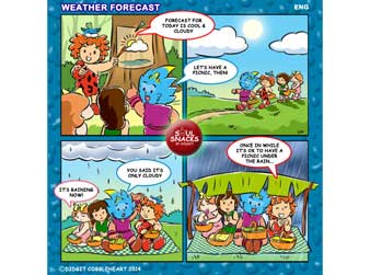 The 55th interactive comic strip for my Soul Snacks by Didgit have been uploaded to my Facebook and Twitter/ Twitpics accounts on Wednesday, February 5, 2014. This episode of comic interactive tells the story of weather forecasting. After hearing that the day will be partly cloudy, my friends and I decided to have a picnic day. But, when we got there, suddenly the rain poured like cats and dogs! So, what do we do? Please read the comic on my Facebook: Didgit Cobbleheart. If you have unique story idea and want to have cool Didgits Soul Snack interactive comic, share your thoughts with me by writing to me on my Facebook account (Go to my web: www.didgitcobbleheart.com and click the Facebooks icon on the lower right hand side) or my Twitter/ Twitpics account @cobbleheart. Soul Snacks by Didgit is a weekly interactive comic strip that will be available on my Facebook and Twitter/ Twitpics accounts every Wednesday! Stay tune for the next edition, or better, send me your ideas so you can show your friends your own comic strip! Truly Yours, Didgit |