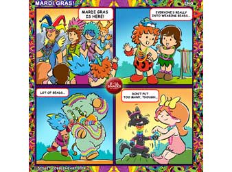 The 56th interactive comic strip for my Soul Snacks by Didgit have been uploaded to my Facebook and Twitter/ Twitpics accounts on Wednesday, February 12, 2014. If you like festivals and carnivals like us, you must know that people in New Orleans, USA, have Mardi Gras on March 4. This festival is also known as Fat Tuesday or Carnival Season. It refers to the practice of the last night of eating richer, fatty foods before the ritual fasting of the Lenten season, which begins on Ash Wednesday. The traditional practices on Mardi Gras is people wearing masks and costumes, overturning social conventions, dancing, sports competitions, parades and beads! Lots of beads! So, my friends and I are inspired by these beads wearing and we bead everyone in Cragtop Caves! What do you think? If your place have unique festivals like Mardi Gras, kindly share it with me so that I can make you a cool Didgits Soul Snack interactive comic like this one. Share your festival on my Facebook account (Go to my web: www.didgitcobbleheart.com and click the Facebooks icon on the lower right hand side) or my Twitter/ Twitpics account @cobbleheart. Soul Snacks by Didgit is a weekly interactive comic strip that will be available on my Facebook and Twitter/ Twitpics accounts every Wednesday! Stay tune for the next edition, or better, send me your ideas so you can show your friends your own comic strip! Truly Yours, Didgit |