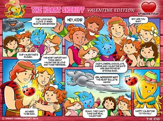 On Valentine Day, February 14, 2014, the last episode of The HEART Sheriff Valentine special edition comic was uploaded on my Didgit Cobblehearts Online Game Facebook page. My friends and I were so sad. The Pollution Monster ruined all of our Valentine Days gifts. But, our parents showed us and told us the real meaning of Valentine. We did not feel sad anymore. If you want to know the real meaning of Valentine for us, please read the comic. Follow other future series of the HEART Sheriff by visiting the Facebook pages of Didgit Cobblehearts Online Game or Didgit Cobbleheart regularly. Oh yes, you can also follow @cobbleheart for so many Didgit Cobblehearts cool stuffs. Play the game at the Apple and Google apps stores. Read the stories, and BE a wonderful HEART SHERIFF YOURSELF. Give out loves and make a better world for everyone... Truly Yours, Didgit |