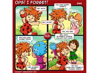 Do you have any idea how I look without my favorite hat? I do not, myself. Today, I just forgot to wear it, and everyone but Vimna, did not have a clue why I looked different. Have you had a story like mine? If you do, you can share them with me on my Facebook account (Go to my web: www.didgitcobbleheart.com and click the Facebook's icon on the lower right hand side) or my Twitter/ Twitpic's account @cobbleheart. I can make your stories into comic formats like this one. "Soul Snacks by Didgit" is a weekly interactive comic strip that will be available on my Facebook and Twitter/ Twitpic's accounts every Wednesday! Stay tune for the next edition, or better, send me your ideas so you can show your friends your own comic strip! Truly Yours, Didgit |