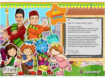 The year 2014 has witnessed tremendous change in Indonesian presidential election and inauguration. There was so much hope for change into a new Indonesia that the nation has changed a new leader named Joko Widodo, who grew up in a poor neighborhood as a kid, worked in a forest and built a furniture company before decided to be politician. He is known as Jokowi, and was celebrated as one of the best mayor in the world when he led the city of Solo, Central Java. Two years ago, with another ground-breaking leader, a Chinese Indonesian named Basuki Tjahaja Purnama, popularly known as Ahok, against all odds, they became the Governor and Vice-Governor of the capital city of Jakarta. The meteorite rise of Jokowi and Ahok to the leadership of Indonesia is a symbol that people want BIG CHANGE for BETTER Indonesia. They want leaders who are humble, caring and hard working to realize their hopes. I am really hoping that they can become Dignified and Caring leaders and thus, inspired as many Indonesian possible to have the same quality so that TOGETHER, Indonesians can make its country a better place for children like us to grow up. That is why I have decided to include them in my "D.C. Leaders Safari" project. It will also be cool if we can share with each others our idols' stories. I will put this project under the "Fan Club's-Sharing Smart Ideas" section, and hope that you will send me yours as well. If you need cool background, feel free to use some nice looking templates that I have shared with you there. Truly Yours, Didgit |