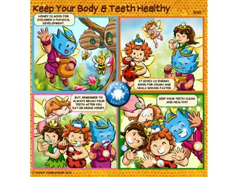 Today, the Tooth Fairy League is back on Wednesday Interactive Comic. Eating or drinking honey is good for our health and growth. Thats why a lot of parents give us honey. But, honey can also be bad to our teeth like other sugary food or drink. Just make sure to brush our teeth after eating or drinking honey so that both of our body and teeth are healthy. If you have other teeth related tips, please share them on my Facebook account (Go to my web: www.didgitcobbleheart.com and click the Facebooks icon on the lower right hand side) or my Twitter/ Twitpics account @cobbleheart. I can make them into cool comic formats like this one. Soul Snacks by Didgit is a weekly interactive comic strip that will be available on my Facebook and Twitter/ Twitpics accounts every Wednesday! Stay tune for the next edition, or better, send me your ideas so you can show your friends your own comic strip! Truly Yours, Didgit |