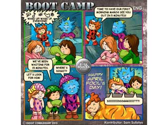 The 114th interactive comic strip for my Soul Snacks by Didgit have been uploaded to my Facebook and Twitter/ Twitpics accounts on Wednesday, April 1, 2015. One of my dearest friend, Sam Sulistyo, has given me cool ideas regularly. This time he wants me to create a story about beeing in an army like setting. So, I came up with the boot camp story and combine with the April Fools day! Do you want to know what happen? Check out the comic. If you have cool story ideas like Sam, please share them on my Facebook account (Go to my web: www.didgitcobbleheart.com and click the Facebooks icon on the lower right hand side) or my Twitter/ Twitpics account @cobbleheart. I can make them into cool comic formats like this one. Soul Snacks by Didgit is a weekly interactive comic strip that will be available on my Facebook and Twitter/ Twitpics accounts every Wednesday! Stay tune for the next edition, or better, send me your ideas so you can show your friends your own comic strip! Truly Yours, Didgit |