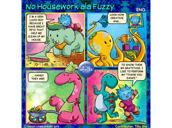 The 116th interactive comic strip for my Soul Snacks by Didgit have been uploaded to my Facebook and Twitter/ Twitpics accounts on Wednesday, April 15, 2015. Todays story idea came from my new friend, Titis Gie, from Yogyakarta, Central Java. She likes Fuzzy a lot, so she wants to know what Fuzzy is doing when he is not doing any houseworks. So, I created this comic for her, and she loved it! If you have cool story ideas like Titis, please share them on my Facebook account (Go to my web: www.didgitcobbleheart.com and click the Facebooks icon on the lower right hand side) or my Twitter/ Twitpics account @cobbleheart. I can make them into cool comic formats like this one. Soul Snacks by Didgit is a weekly interactive comic strip that will be available on my Facebook and Twitter/ Twitpics accounts every Wednesday! Stay tune for the next edition, or better, send me your ideas so you can show your friends your own comic strip! Truly Yours, Didgit |