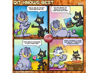 The 131st interactive comic strip for my Soul Snacks by Didgit have been uploaded to my Facebook and Twitter/ Twitpics accounts on Wednesday, July 29, 2015. Since I have not introduced Jingas new cat, Qit, properly to all of you, I decided to make a comic on him so that you can catch a little idea about this skinny black cat. Being the new cat in the block proved to be a challenging thing for him. Making friend was not an easy thing at all! If you have your experiences like this or other interesting stories, please share them on my Facebook account (Go to my web: www.didgitcobbleheart.com and click the Facebooks icon on the lower right hand side) or my Twitter/ Twitpics account @cobbleheart. I can make them into cool comic formats like this one. Soul Snacks by Didgit is a weekly interactive comic strip that will be available on my Facebook and Twitter/ Twitpics accounts every Wednesday! Stay tune for the next edition, or better, send me your ideas so you can show your friends your own comic strip! Truly Yours, Didgit |