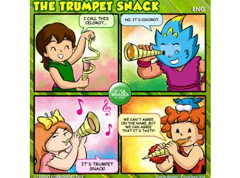 The 132nd interactive comic strip for my Soul Snacks by Didgit have been uploaded to my Facebook and Twitter/ Twitpics accounts on Wednesday, August 5, 2015. My dear friend, Aunty Princess Ina, asked me to make a comic out of this unique snack of Indonesia called the Trumpet snack. Do you wonder what is it? Read my comic to find out more about it. If you have your snacks like this or other interesting stories, please share them on my Facebook account (Go to my web: www.didgitcobbleheart.com and click the Facebooks icon on the lower right hand side) or my Twitter/ Twitpics account @cobbleheart. I can make them into cool comic formats like this one. Soul Snacks by Didgit is a weekly interactive comic strip that will be available on my Facebook and Twitter/ Twitpics accounts every Wednesday! Stay tune for the next edition, or better, send me your ideas so you can show your friends your own comic strip! Truly Yours, Didgit |