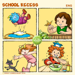 The 178th interactive comic strip for my "Soul Snacks by Didgit" have been uploaded to my Facebook and Twitter/ Twitpic's accounts on Wednesday, July 27, 2016. Do you want to know how we spend our school recess? Follow our Soul Snack comics! If you have your unique school recess story like this or other interesting stories, please share them on my Facebook account (Go to my web: www.didgitcobbleheart.com and click the Facebook's icon on the lower right hand side) or my Twitter/ Twitpic's account @cobbleheart. I can make them into cool comic formats like this one. "Soul Snacks by Didgit" is a weekly interactive comic strip that will be available on my Facebook and Twitter/ Twitpic's accounts every Wednesday! Stay tune for the next edition, or better, send me your ideas so you can show your friends your own comic strip! Truly Yours, Didgit |