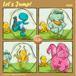 The 187th interactive comic strip for my "Soul Snacks by Didgit" have been uploaded to my Facebook and Twitter/ Twitpic's accounts on Wednesday, September 28, 2016. Who likes rope-jumping like these cute pets of Fuzzy? I personally like all kind of jumping! If you have your unique story like this or other interesting stories, please share them on my Facebook account (Go to my web: www.didgitcobbleheart.com and click the Facebook's icon on the lower right hand side) or my Twitter/ Twitpic's account @cobbleheart. I can make them into cool comic formats like this one. "Soul Snacks by Didgit" is a weekly interactive comic strip that will be available on my Facebook and Twitter/ Twitpic's accounts every Wednesday! Stay tune for the next edition, or better, send me your ideas so you can show your friends your own comic strip! Truly Yours, Didgit |