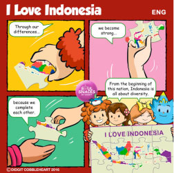 The 194th interactive comic strip for my "Soul Snacks by Didgit" have been uploaded to my Facebook and Twitter/ Twitpic's accounts on Wednesday, November 16, 2016. Indonesia is the biggest archipelago in the world! It's home for hundreds of tribes, dialects and culture. It's diverse but it's also one. Let's keep it that way. If you have your unique story like this or other interesting stories, please share them on my Facebook account (Go to my web: www.didgitcobbleheart.com and click the Facebook's icon on the lower right hand side) or my Twitter/ Twitpic's account @cobbleheart. I can make them into cool comic formats like this one. "Soul Snacks by Didgit" is a weekly interactive comic strip that will be available on my Facebook and Twitter/ Twitpic's accounts every Wednesday! Stay tune for the next edition, or better, send me your ideas so you can show your friends your own comic strip! Truly Yours, Didgit |